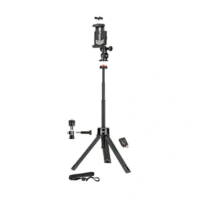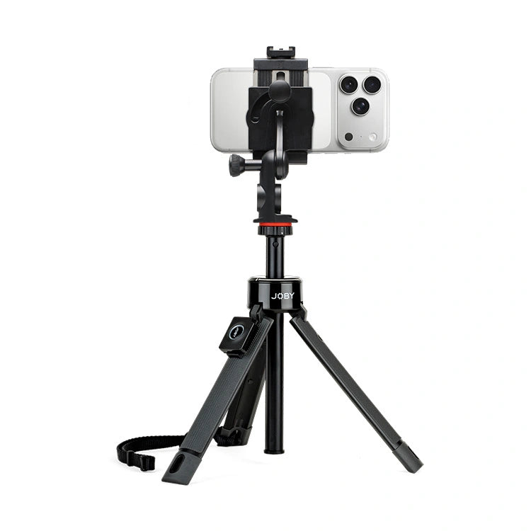 Create epic vlogs using an extendable hand grip with tripod base plus Bluetooth® remote for iPhone and Android.